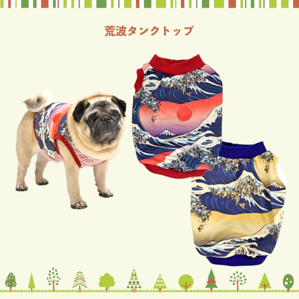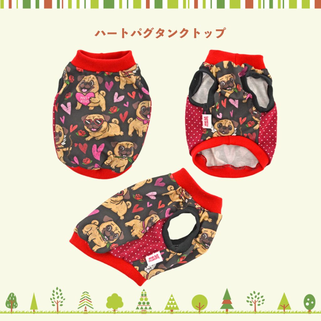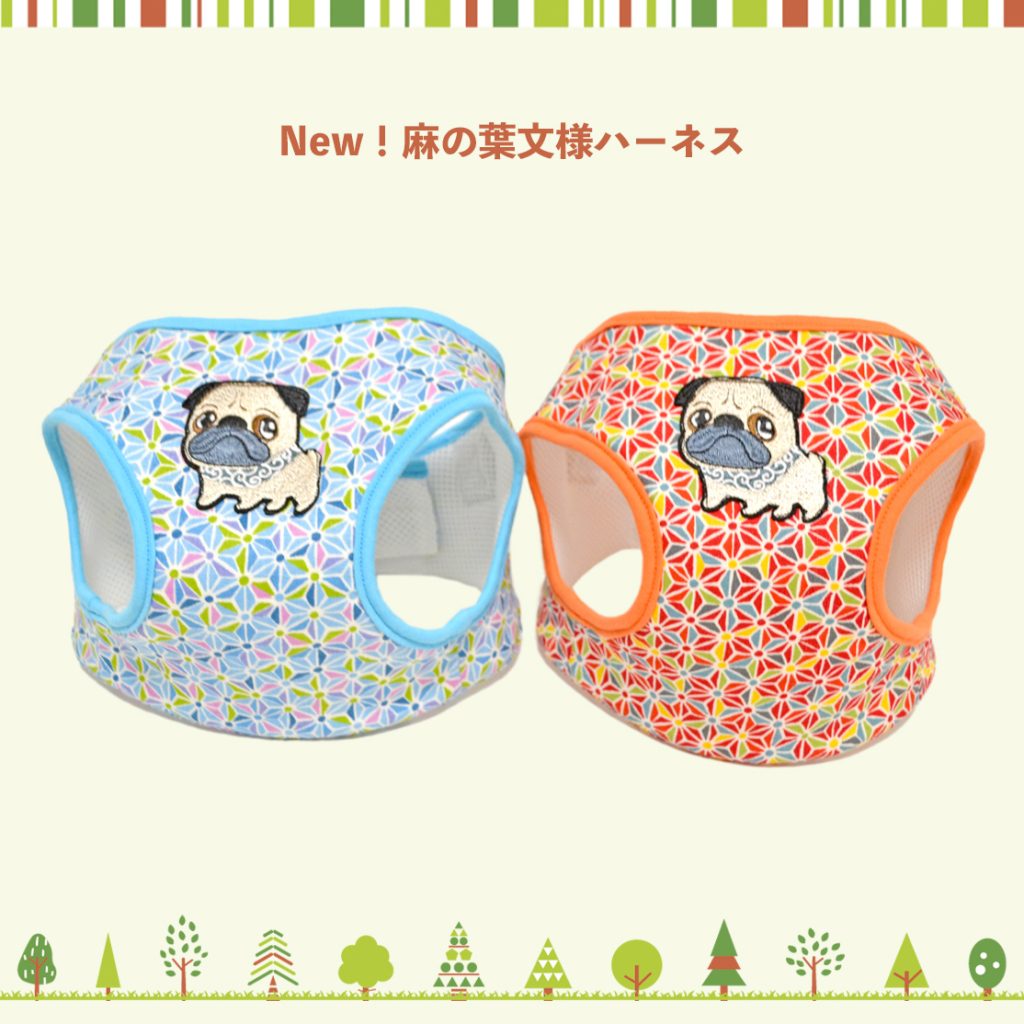 この他にも定番の唐草ハーネスやパグ柄のタンクトップやクールタンクトップとなるべく多く持っていこうと思っていますので楽しみにしていてくださいね。