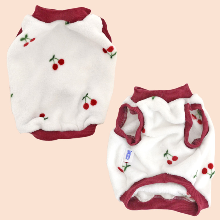 真っ白なフリース生地にさくらんぼがプリントされた、シンプルなフリースタンクトップです。