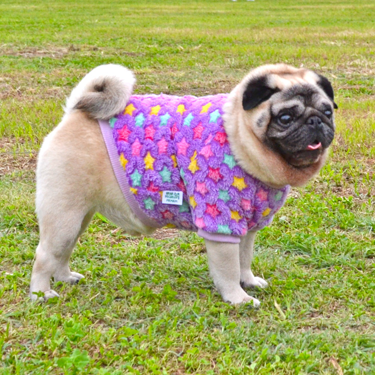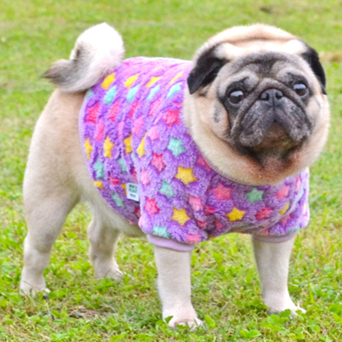 薄めのパープルにカラフルなお星様が散りばめられた派手かわTシャツは、