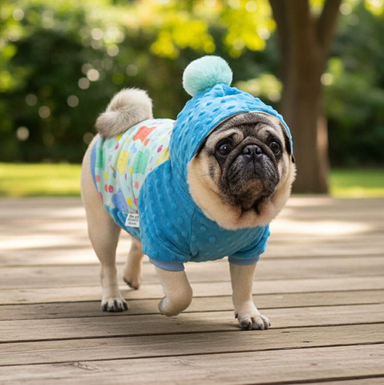 パグ柄(裏地)、フード(裏地) : 綿100%の裏起毛生地